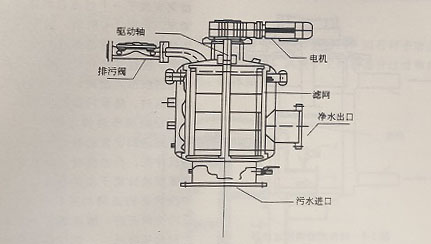 刷(刮)式自清洗濾水器通過清污刷或者刮刀與過濾網的物理接觸來將過濾網上的污物清掉,再由排污系統排出,刷(刮)式自清洗濾水器如下圖所示所示,刷(刮)式自清洗濾水器對過濾網的強度、剛度以及耐久性要求比較高,同時與吸污式濾水器相比,排污流量大,但刷(刮)式自清洗濾水器對清洗頑固的污垢效果好,具有較好的適應性。